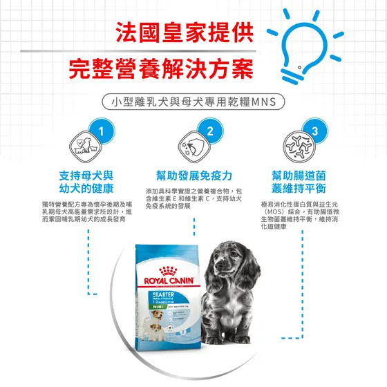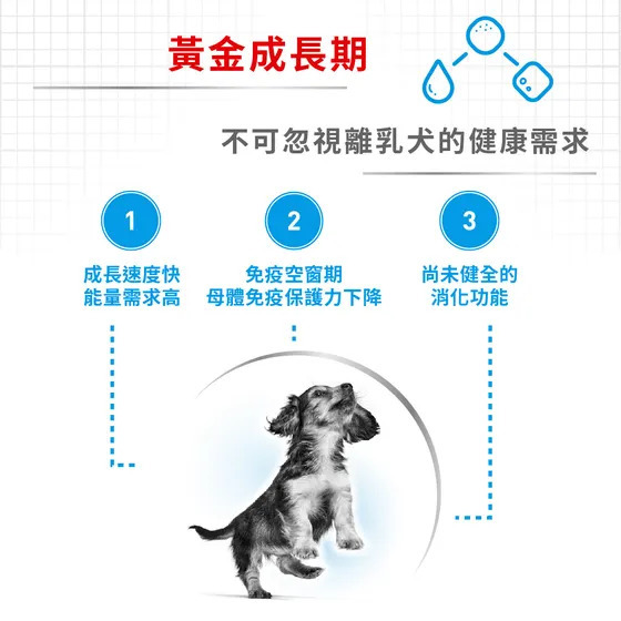 源自法國皇家研發,配方接近母乳營養組成,並添加關鍵營養素,幫助維持幼犬消化道健康與免疫力。