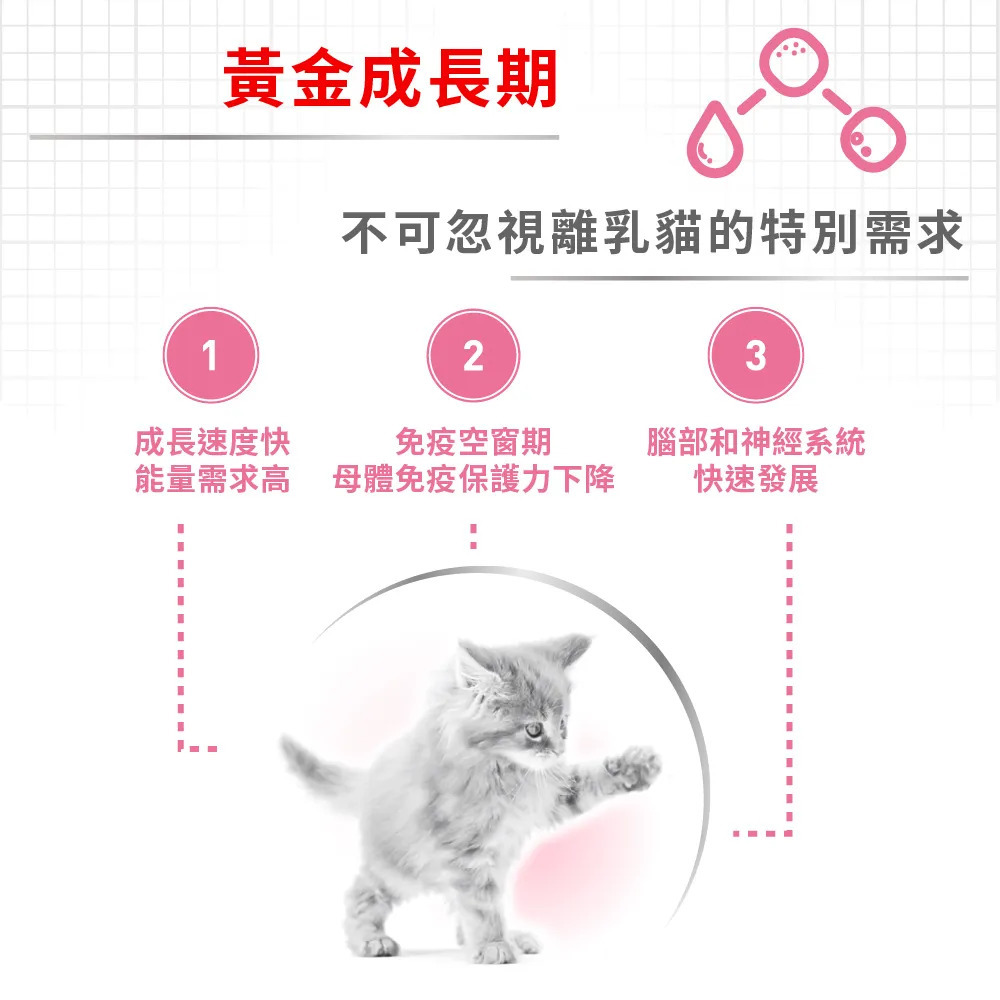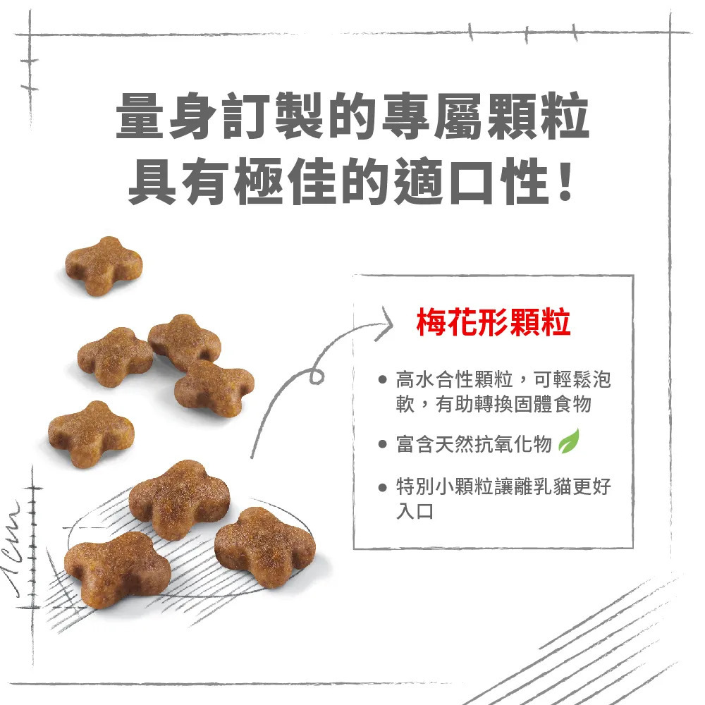 離乳貓、母貓專用乾飼料,支持貓咪健康成長、免疫力發展及大腦發育。添加獨特營養成分維生素E、維生素C及DHA,適合母貓與幼貓在哺乳到離乳過程中的全面需求,為每個成長階段提供全面照護,維持自然防禦力。