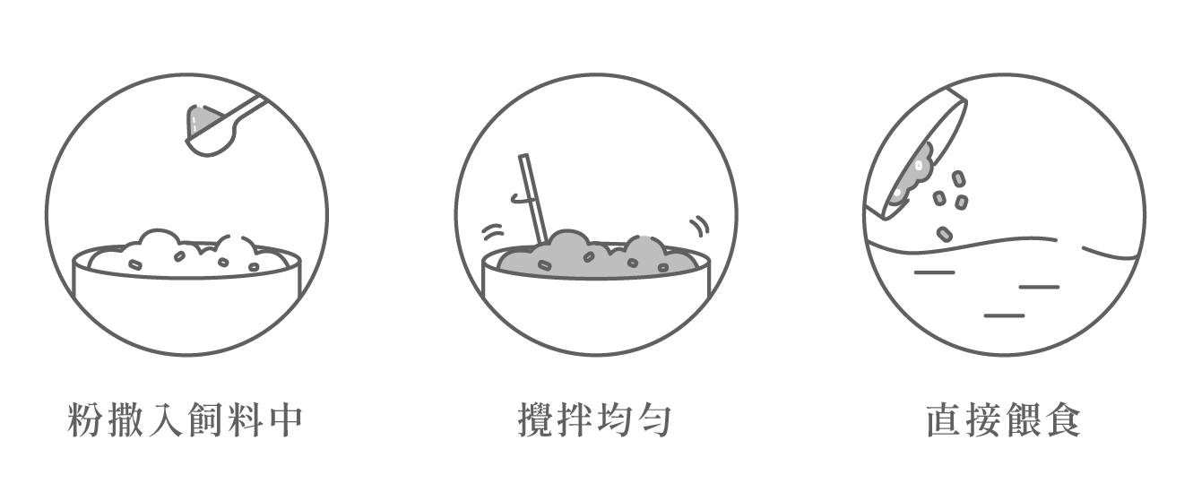 • 適用情境:正常飼養管理條件下需提供鈣質、保健骨質、促進食慾時,以及調整腸道細菌叢生態、日常保健、活動力不佳、調理體質、病後補養、腸胃保健…等情境均可使用。