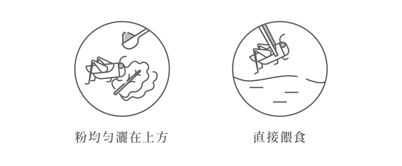 • 使用方法:本產品可混於飼料或撒布鮮食上餵食,亦可混在飲水中餵食,每100克飼料或200ml飲水添加1克,或取適量撒在菜葉、水果及沾附昆蟲餵食,一週兩次即可。正常使用不影響適口性,建議搭配纖維/肉食性維生素可達最佳餵食體驗。