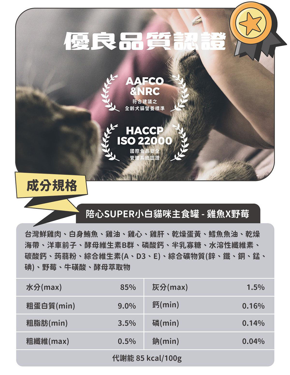 ⭐️ 符合AAFCO&NRC建議之營養標準,適合全齡貓食用