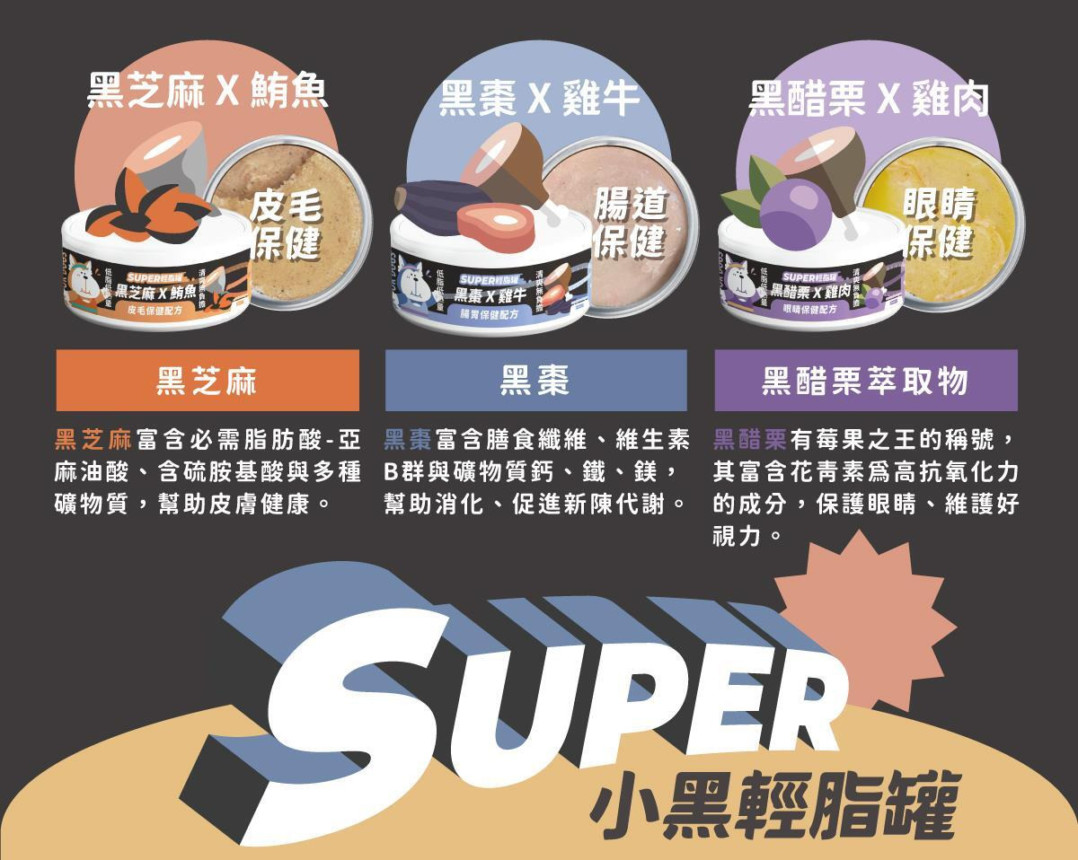 ⭐️每罐添加不同的『黑色系超級食物』,輕脂、飽足感一罐擁有!