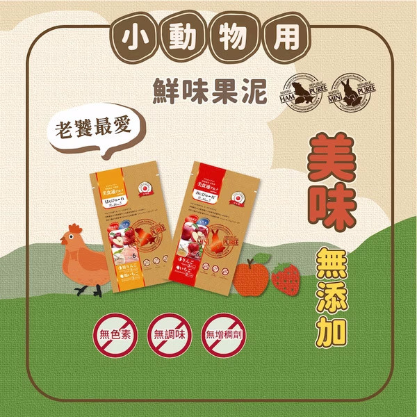 產品名稱: 小動物用鮮味果泥 雞肉蘋果/雞肉草莓