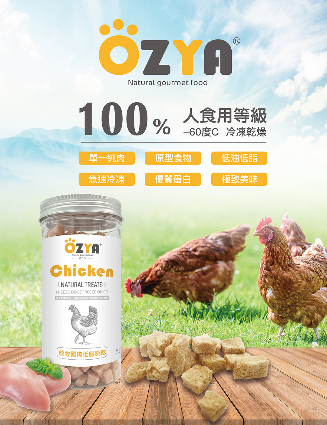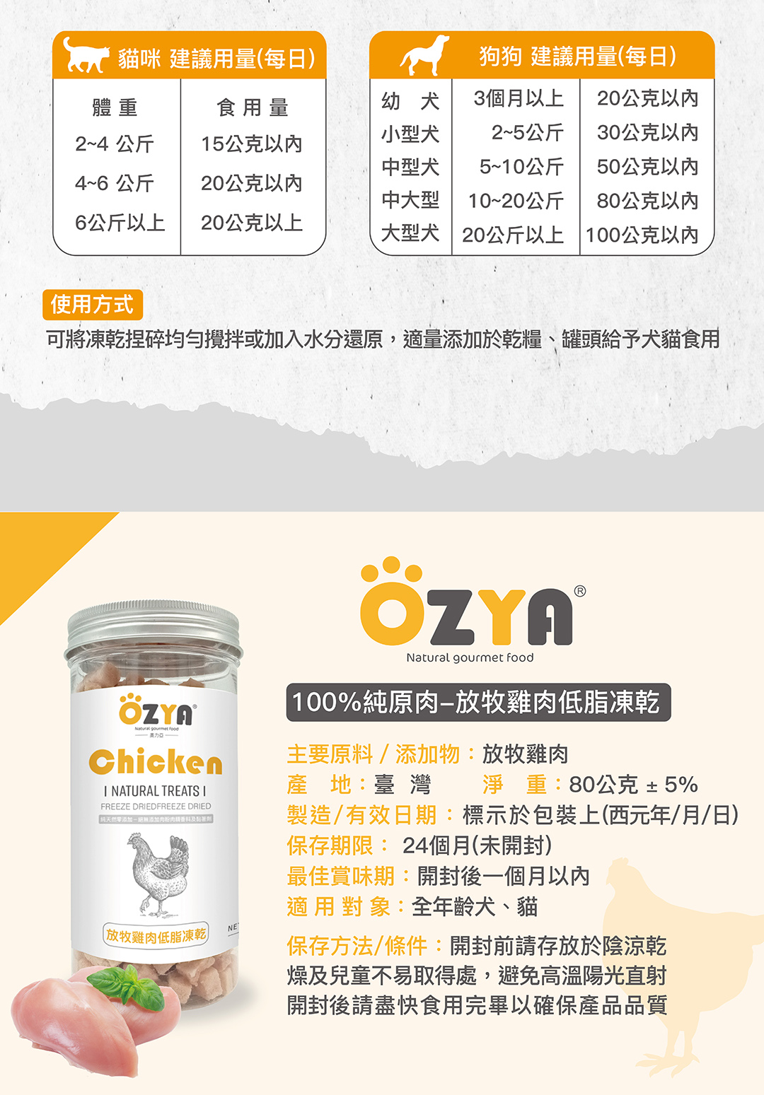 OZYA 奧力亞|100%純原肉-放牧雞肉低脂凍乾 80g 貓凍乾 犬凍乾 凍乾零食(貓狗零食)