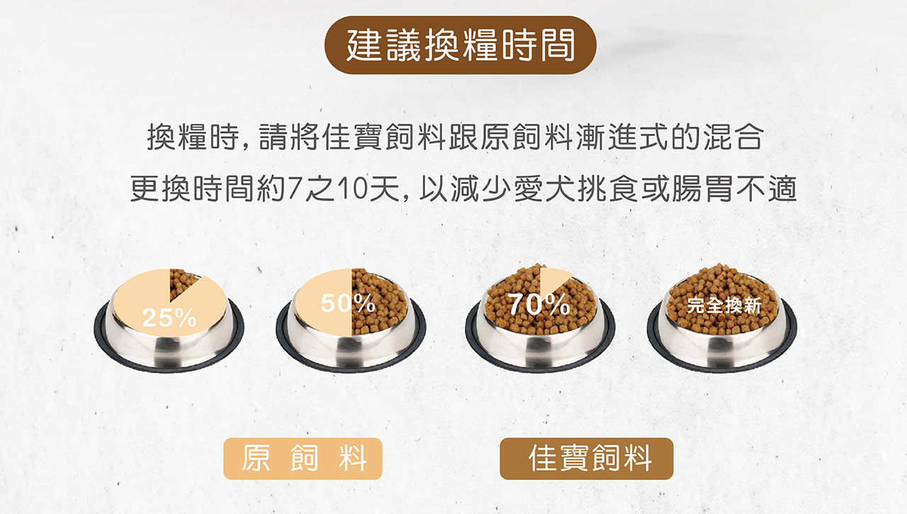 蛋白質18%以上、脂肪10%以上、水分8%以下、粗纖維4%以下、鈣1.0%以上、磷0.8%以上